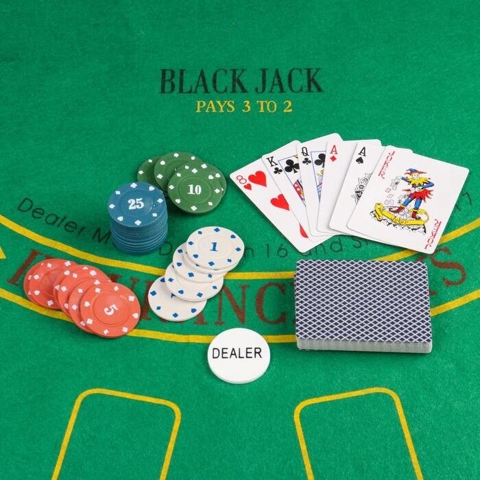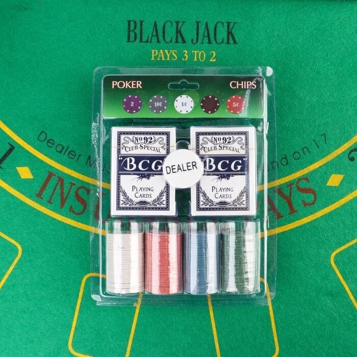 Покерный набор для игры (карты 2 колоды, фишки с номиналом 100 шт., сукно 40х60 см)