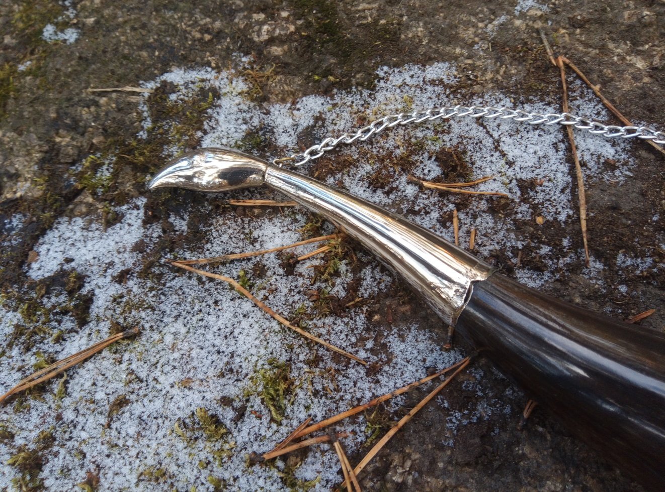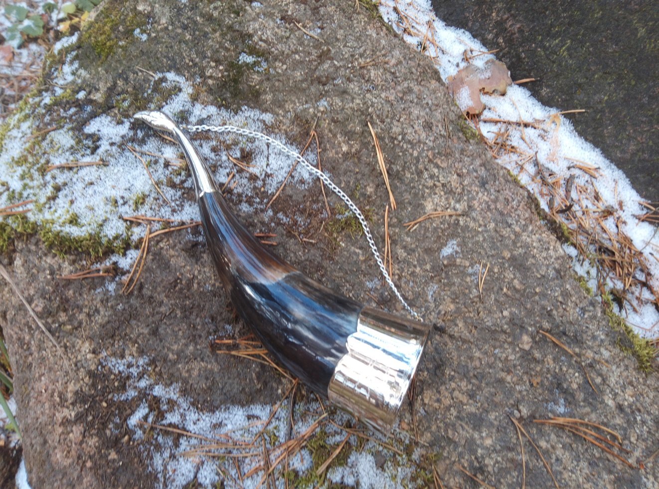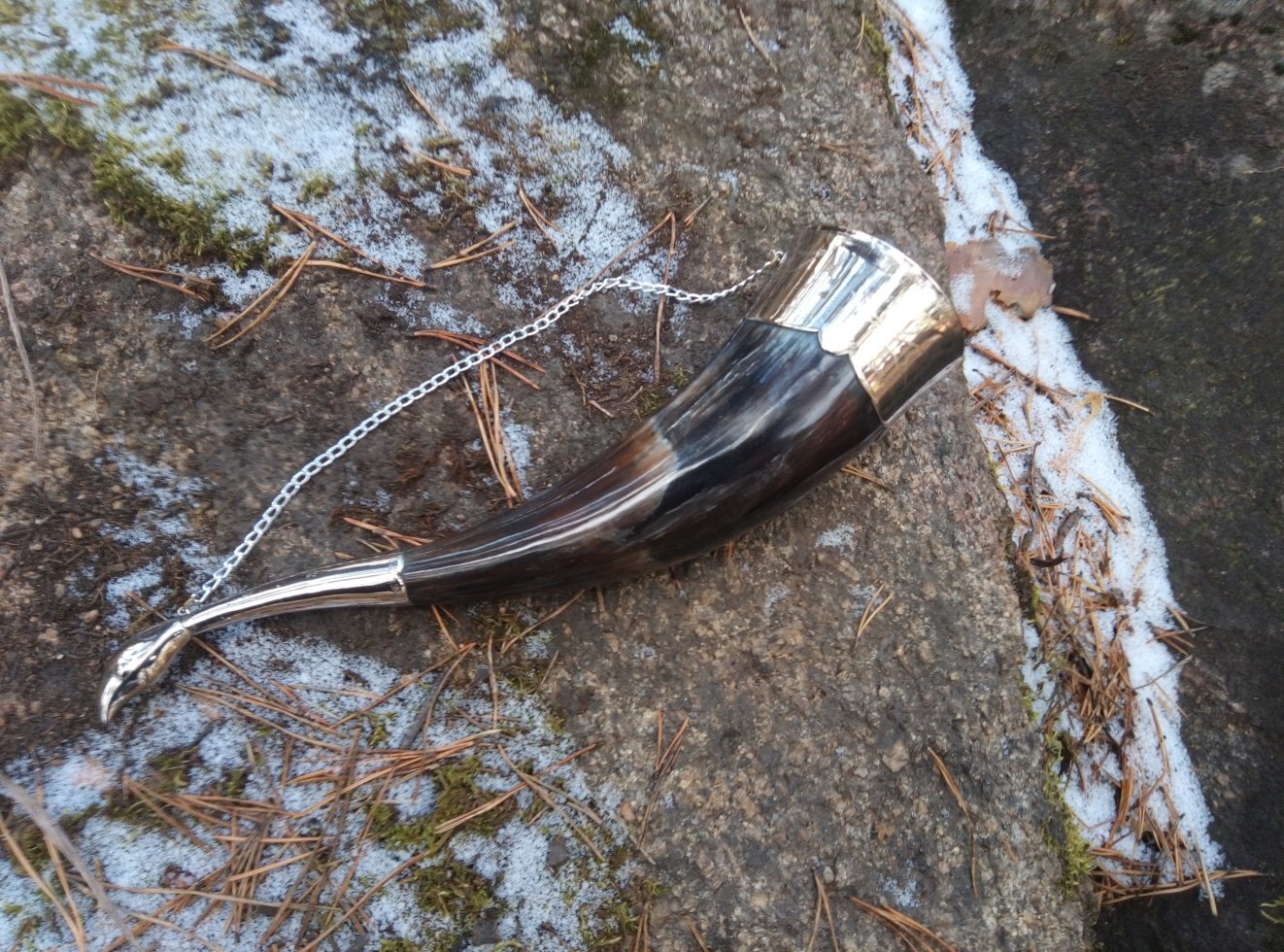 Изготавливается рог для вина с отделкой мельхиором, ручная работа, 25-27 см. вручную из рогов парнокопытных животных (быков, козлов, туров, баранов и зубров). Их тщательно обрабатывают и отделывают металлом в области острия и по краю, чтобы обеспечить абсолютную герметичность. Обязательным атрибутом считается цепочка. Она была необходима во время переездов и походов, поскольку распитие вина было неотъемлемой частью трапезы. Сосуд можно было подвесить, чтобы не занимать много места в сумках и избежать повреждений.