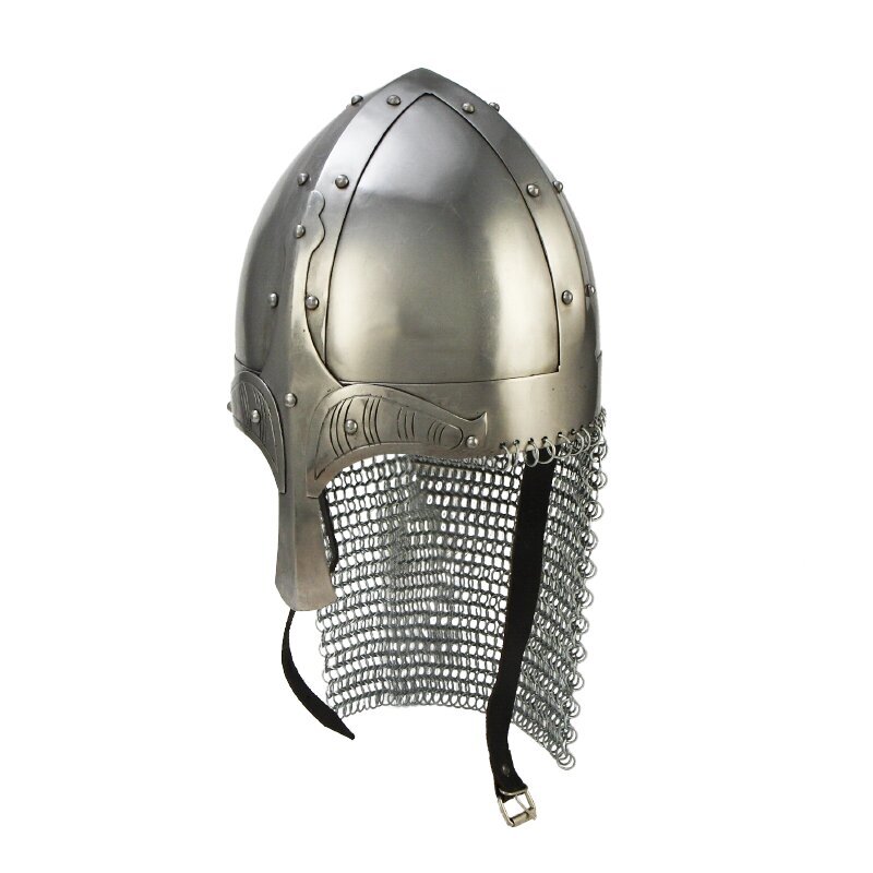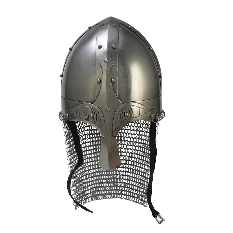 Шлем назальный с кольчужной защитой, равно как и любой другой средневековый шлем, представленный в нашем магазине подарков и сувениров "Особый Случай", является лидером в оформлении интерьера комнаты, жилья или кабинета, придавая ему уникальность и атмосферу рыцарского средневекового замка, а в купе с мечами, щитами и доспехами, делает образ помещения завершенным. Кроме того, шлем будет прекрасно применим и в реконструкциях средневековых битв и в постановках.