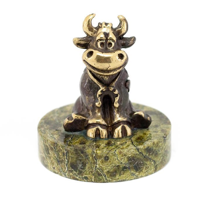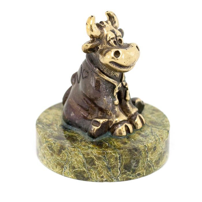 Статуэтка "Бычок с подковой сидит" бронза змеевик (116166)