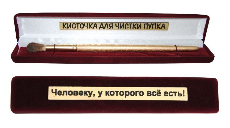 Прикольный подарок "Кисточка для чистки пупка" в красном бархатном футляре отличный подарок человеку, у которого есть всё! Подарок на тот случай, когда сказали: "Ничего дарить не надо".