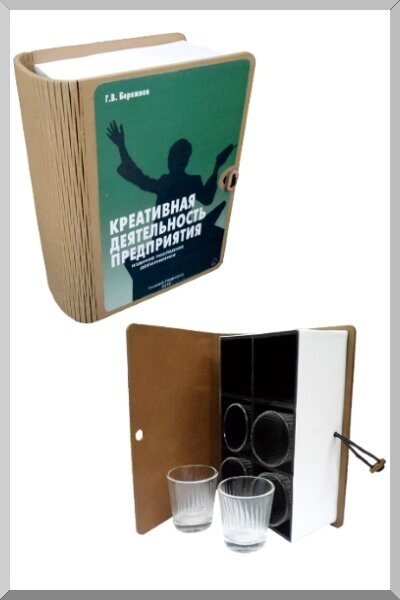 У нас Вы можете купить необычный сувенир книга-бар "Креативная деятельность предприятия". Подарочное издание может стать прикольным подарком к профессиональному празднику. Открыв такую книжку, внутри вы обнаруживаете настоящий "джентльменский набор".