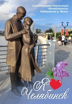 Магнит Челябинска "Влюбленные" закатной 80*53 мм на металле №0081