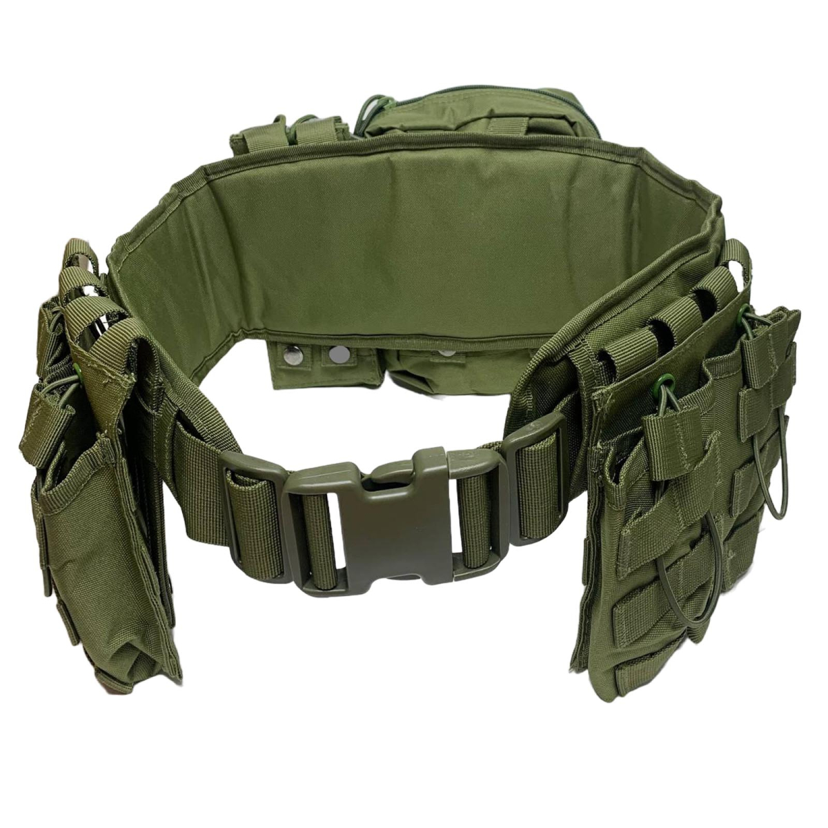 Тактический боевой варбелт (олива) армирован вставками для жесткости при поперечной нагрузке. Материал - прочная ткань Cordura 1000D. Утилитарные подсумки под аптечку, рацию, боеприпасы и все необходимое снаряжение первой линии