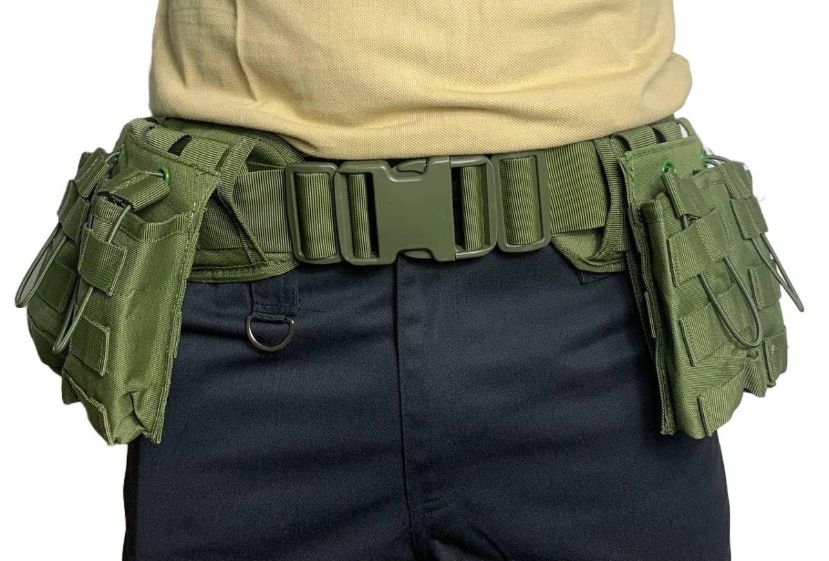 Модульный боевой ремень оснащен большим тактическим подсумком под аптечку, утилитарными подсумками под магазины и гранаты с ячейками для дополнительного снаряжения, подсумком под рацию, двумя вместительными отсеками для различного снаряжения – фонарей, мультитулов и т.д.. По всей длине - стропы MOLLE.