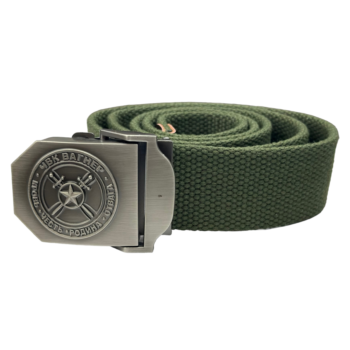 Текстильный ремень со стальной пряжкой "ЧВК Вагнер – Кровь Честь Родина Отвага"