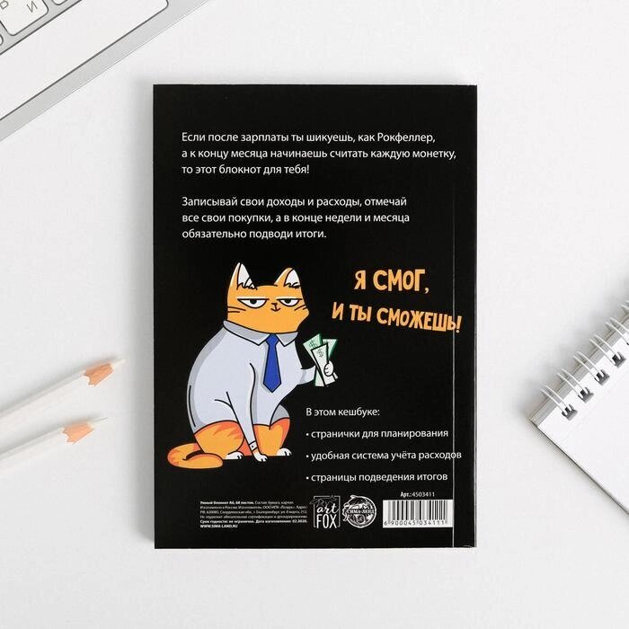 Умный блокнот CashBook А6, 68 листов «Кот трудоголик»