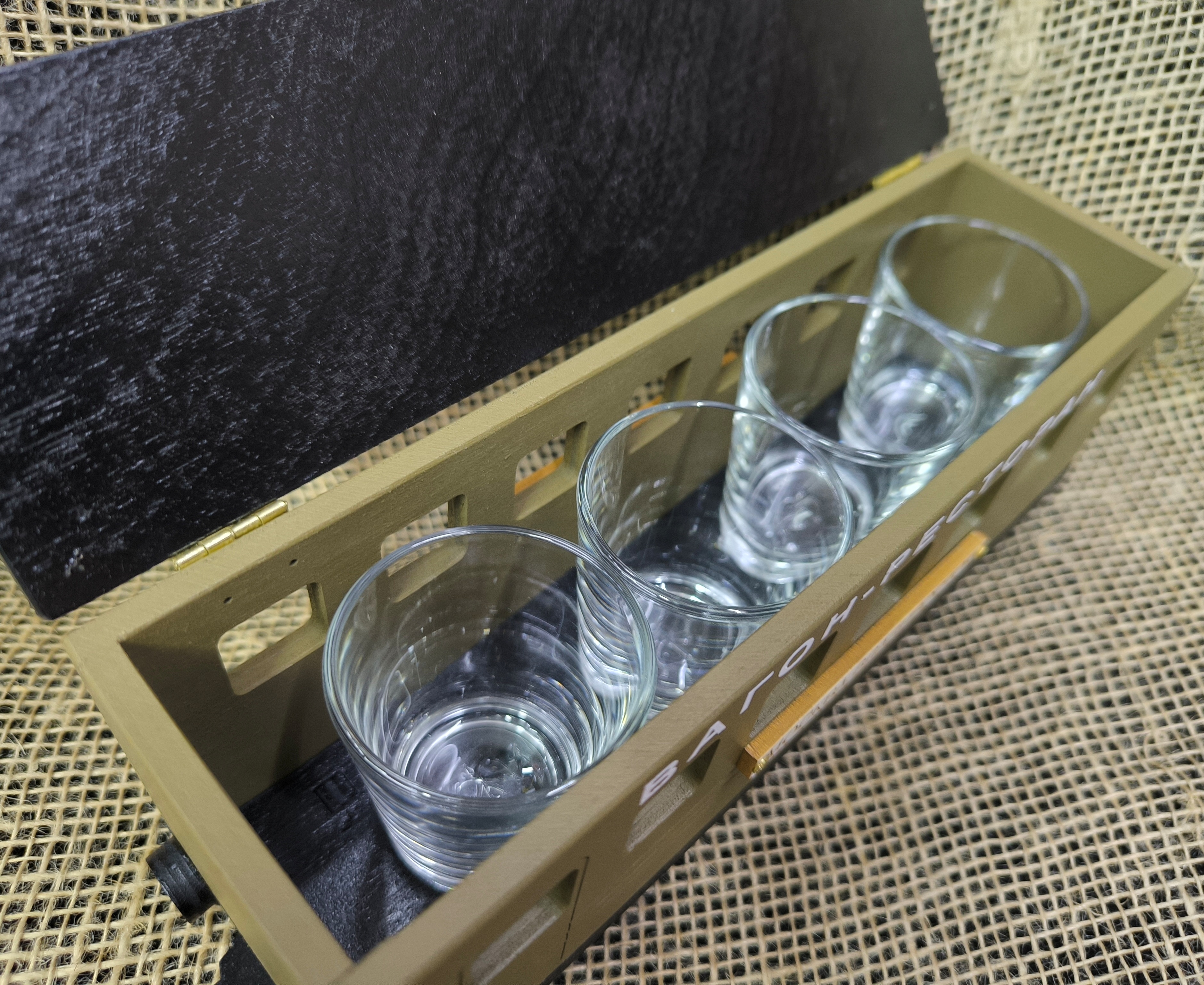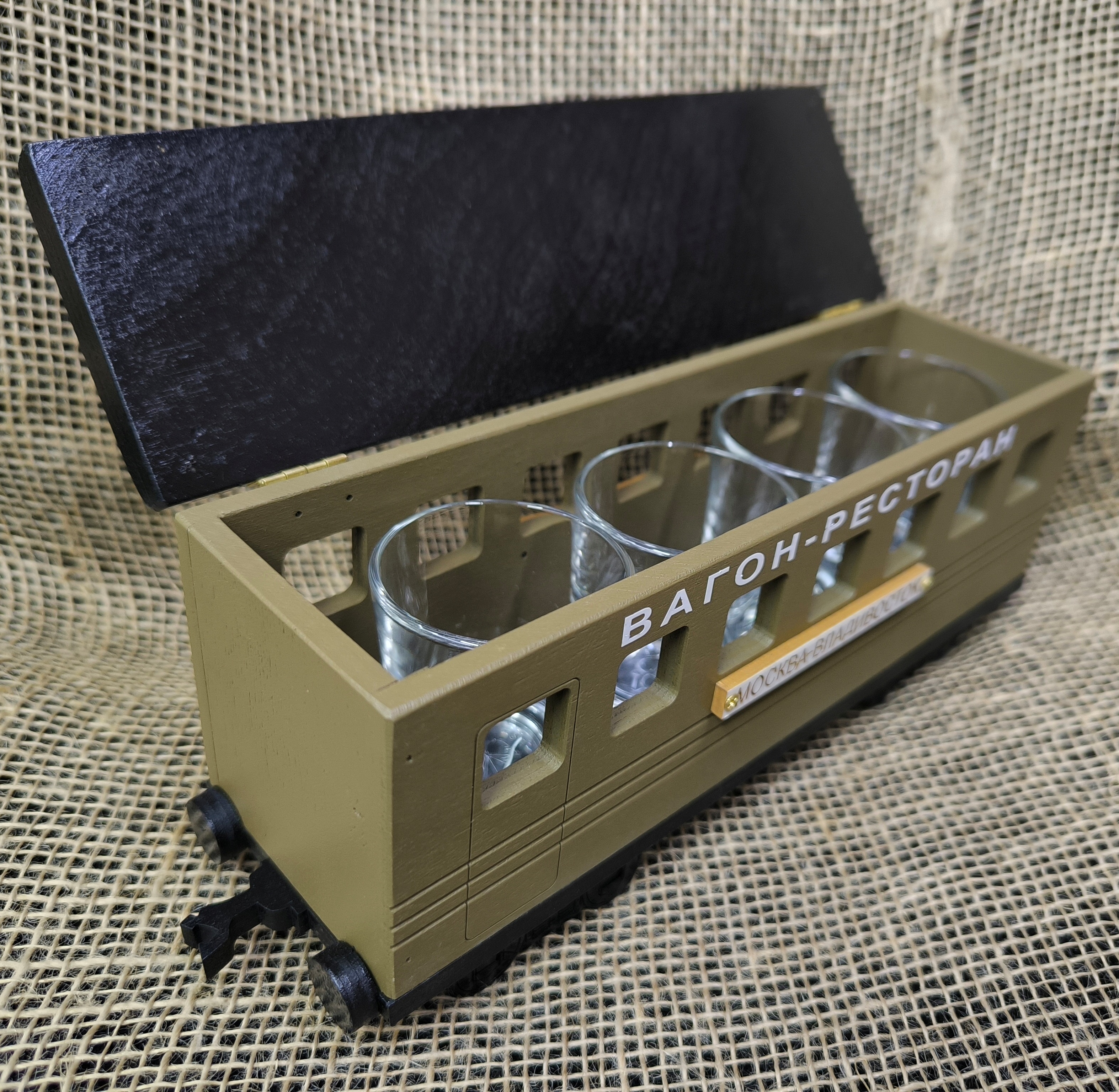 Набор из четырёх стопок "Вагон-ресторан" на подставке.