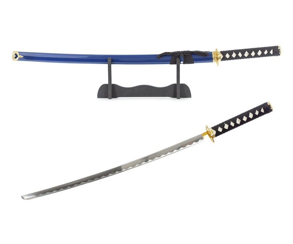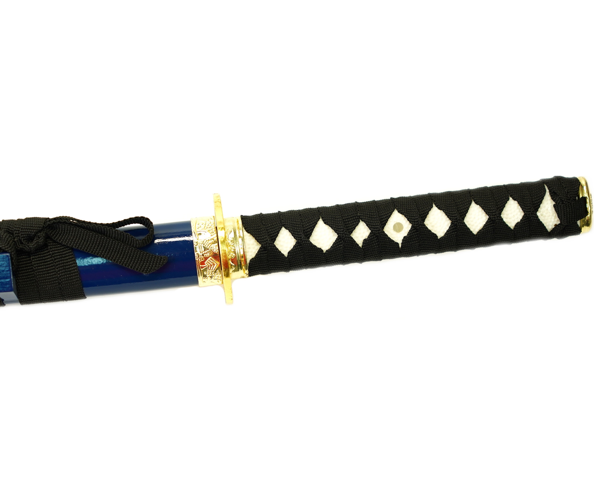 Вы ищете уникальный сувенир, который станет прекрасным подарком или дополнением к вашей коллекции? Купить Самурайский меч Катана (синие ножны, гарда «золотое солнце») - это отличный выбор! Наш военторг Кирасир предлагает широкий ассортимент мечей катана, выполненных с большой точностью и вниманием к деталям. Мы гарантируем высокое качество наших товаров и доступные цены.